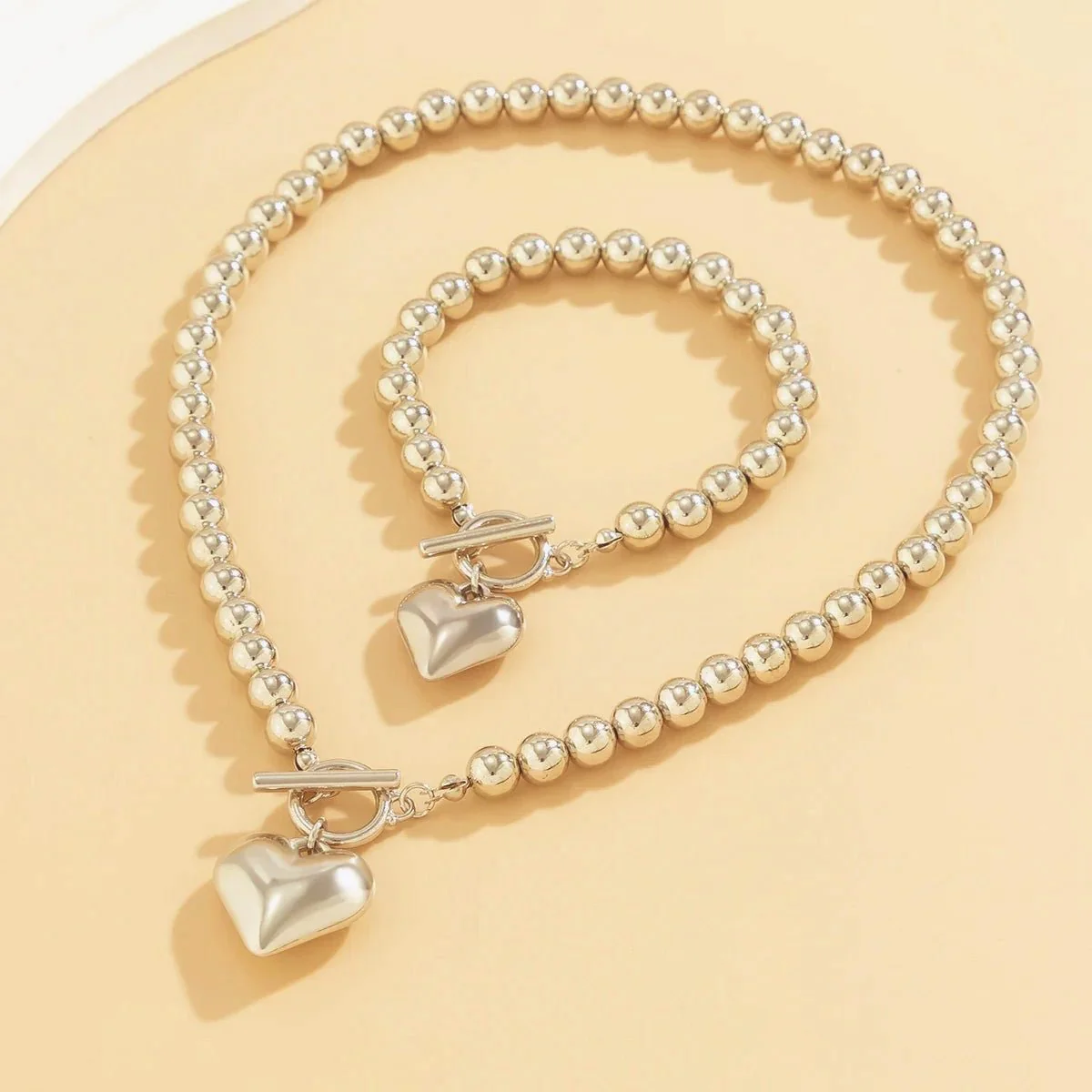 The Beaded Heart Pendant Bracelet and Necklace Set is an exquisite ensemble that combines classic elegance with romantic design, perfect for adding a touch of love to your style.