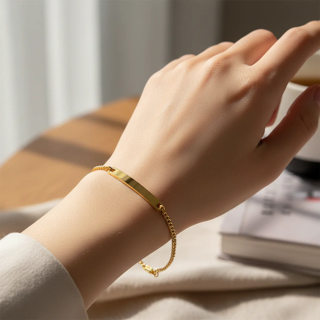 Crafted from 316L stainless steel and coated with genuine 18k gold, your engraved bracelets are designed to last a lifetime.