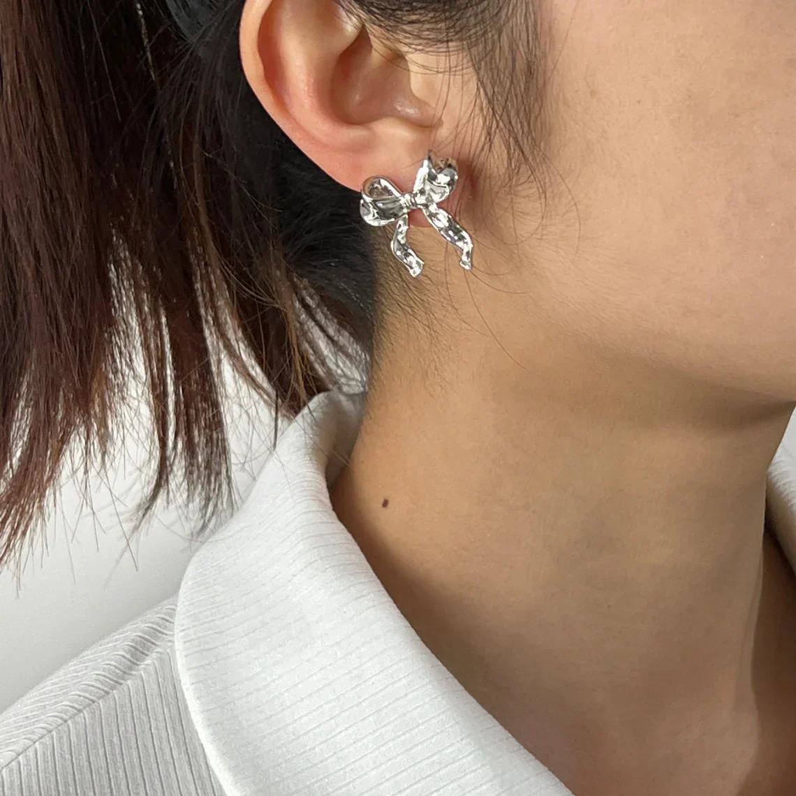 Embrace elegance and charm with the White Gold Earrings with Bow - Stud Earrings with Bow Pattern. Order yours today and experience the perfect blend of style and grace!